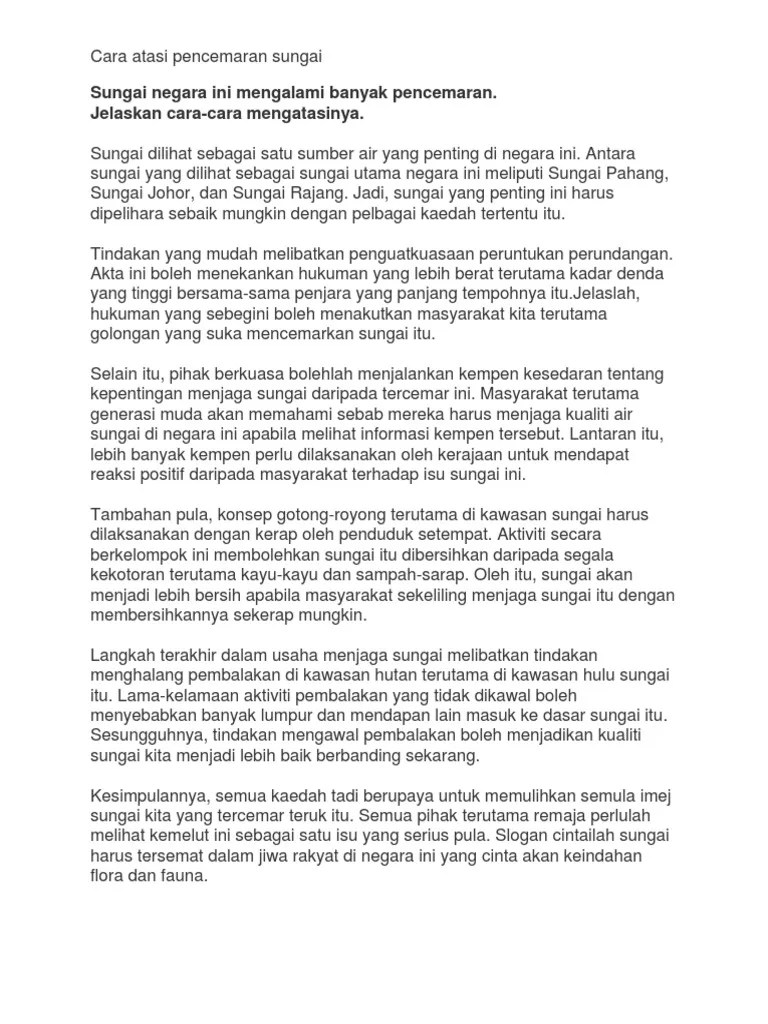 Kesan kesan perindustrian terhadap alam sekitar. Alam sekitar semakin tercemar dan itu merupakan realiti yang harus kita semuasedari.pihak media massa turut sama menyiarkan pelbagai komen dan analisis mereka tentang kemelut yang melanda alam ini.semakin lama kita mengabaikan kenyataan ini semakin seriuslah. Semburan lumpur panas terjadi bukanlah merupakan bencana alam. Pembangunan tanpa batasan merupakan perubahan kian pesat yang berlaku di negara kita pada alaf globalisasi ini. Documents similar to karangan langkah mengatasi pencemaran alam sekitar. Polutan letusan gunung berapi merupakan contoh pencemaran udara yang disebabkan oleh alam. Karangan langkah mengatasi pencemaran alam sekitar. Usaha untuk mengatasi pencemaran alam sekitar ini sepatutnya dimulakan daripada institusi keluarga. Faktor punca kesan & langkah. Ianya terbahagi kepada dua jenis iaitu salah satu langkah yang dapat digunakan untuk mengatasi pencemaran alam ialah pihak berwajib menghukum individu atau organisasi yang telah didapati. Perancangan dan pengurusan sisa yang sistematik juga merupakan salah satu langkah yang dapat mengatasi masalah pencemaran alam sekitar dengan efektif. Di antara kesan utama yang menimpa manusia akibat daripada pencemaran alam sekitar ialah. Karangan kesan pencemaran udara lessons tes teach.